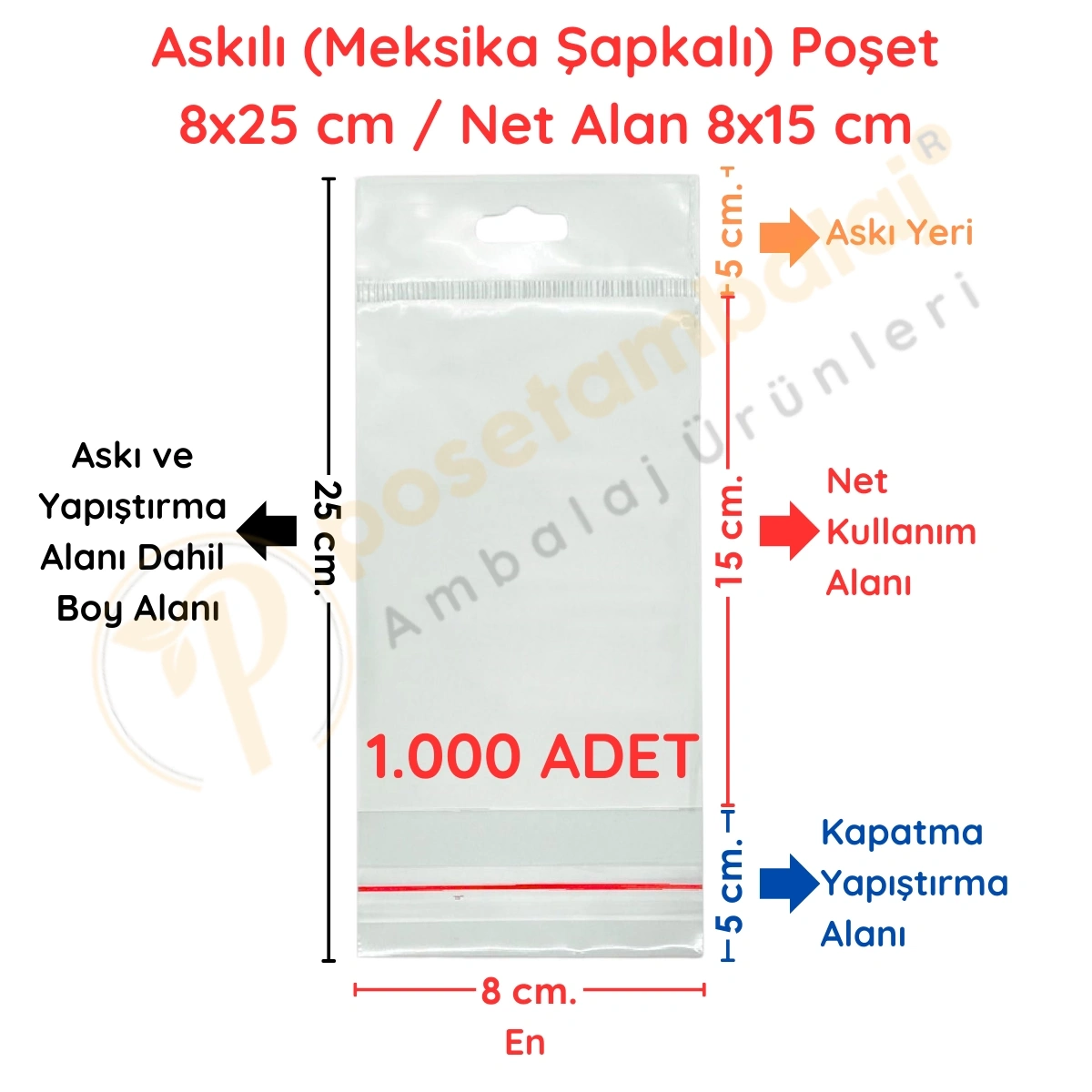 Ürünlerinizi hem koruyan hem de dikkat çekici bir şekilde sergilemek istiyorsanız, Meksika Şapkalı OPP Askılı Poşet tam size göre! 8x25 cm ölçüsü ile orta boy küçük ürünler için ideal bir ambalaj seçeneğidir. Kapalı hali 8x15 cm olan bu poşet, 1.000 adetlik ekonomik paket halinde satıştadır.