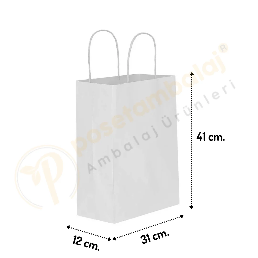 • Beyaz Kraft Çanta Büyük Boy 31x12x41 cm 25 Adet