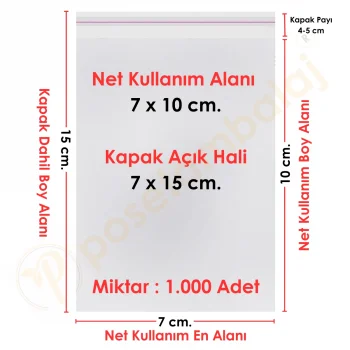 8x10+5 cm.(8x15) 1.000 Adet Şeffaf Bantlı Yapışkanlı Jelatin Poşet