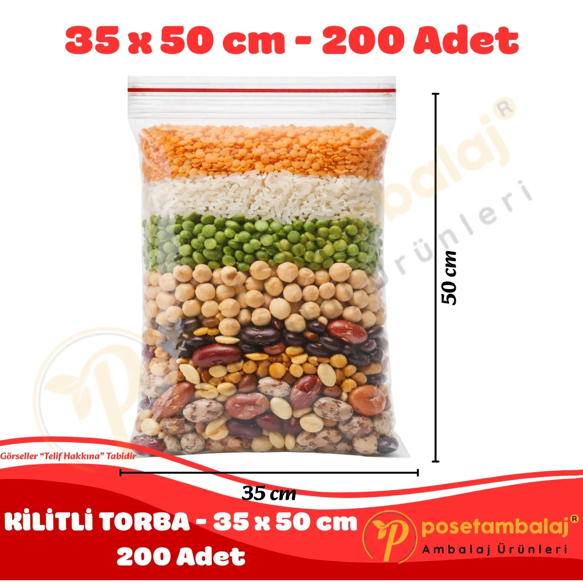 35x50 cm kilitli torbalar, büyük hacimli ürünler için yüksek dayanıklılık ve güvenli kullanım sunar.