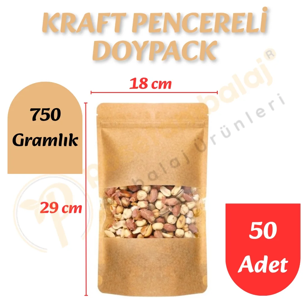 Kraft Pencereli Doypack 18x29x9 cm, doğal kraft görünümü ve şeffaf pencere tasarımı sayesinde ürünlerinizi şık ve güvenli bir şekilde ambalajlamanızı sağlar. Fermuarlı yapısı ile ürünlerin tazeliğini uzun süre korur ve alıcıların güvenle görüp tercih etmesine yardımcı olur. Kahve, kuruyemiş, baharat, kuru meyve ve daha birçok ürün için ideal bir ambalaj çözümüdür. 50 adetlik ekonomik paket içeriğiyle hem ticari hem de bireysel kullanım için uygundur.