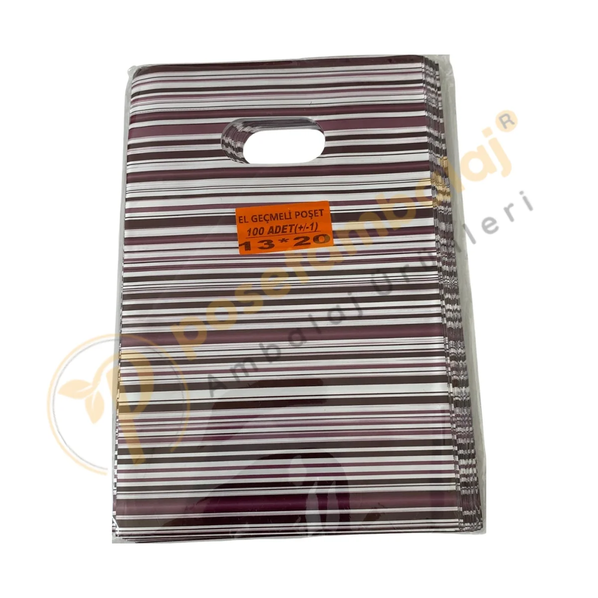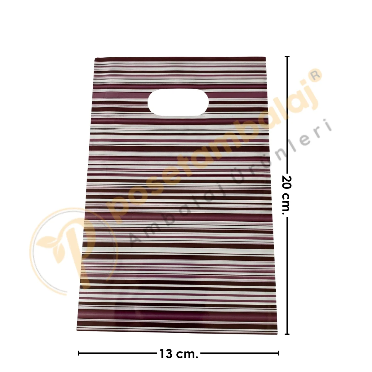 Mor tonlarının zarif uyumu ile tasarlanan çizgili desenli 13x20 cm hediyelik poşet, modern ve sade ambalaj tercih edenler için estetik bir çözümdür.